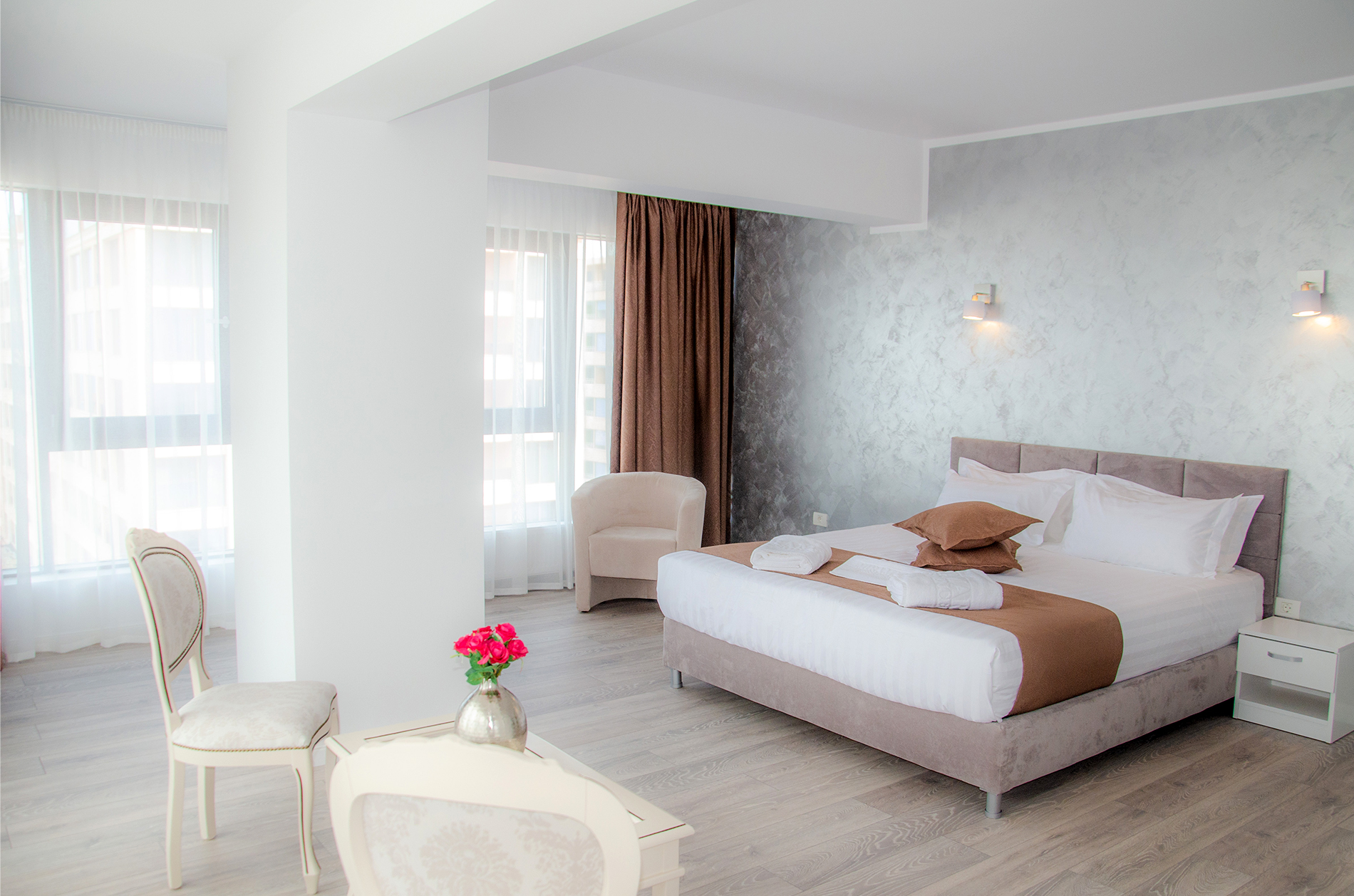 Piscina cu apa incalzita, piscina cu apa sarata, plaja privata cu sezlonguri si umbrele. Receptie 24h. Servicii de housekeeping. Parcare pazita.