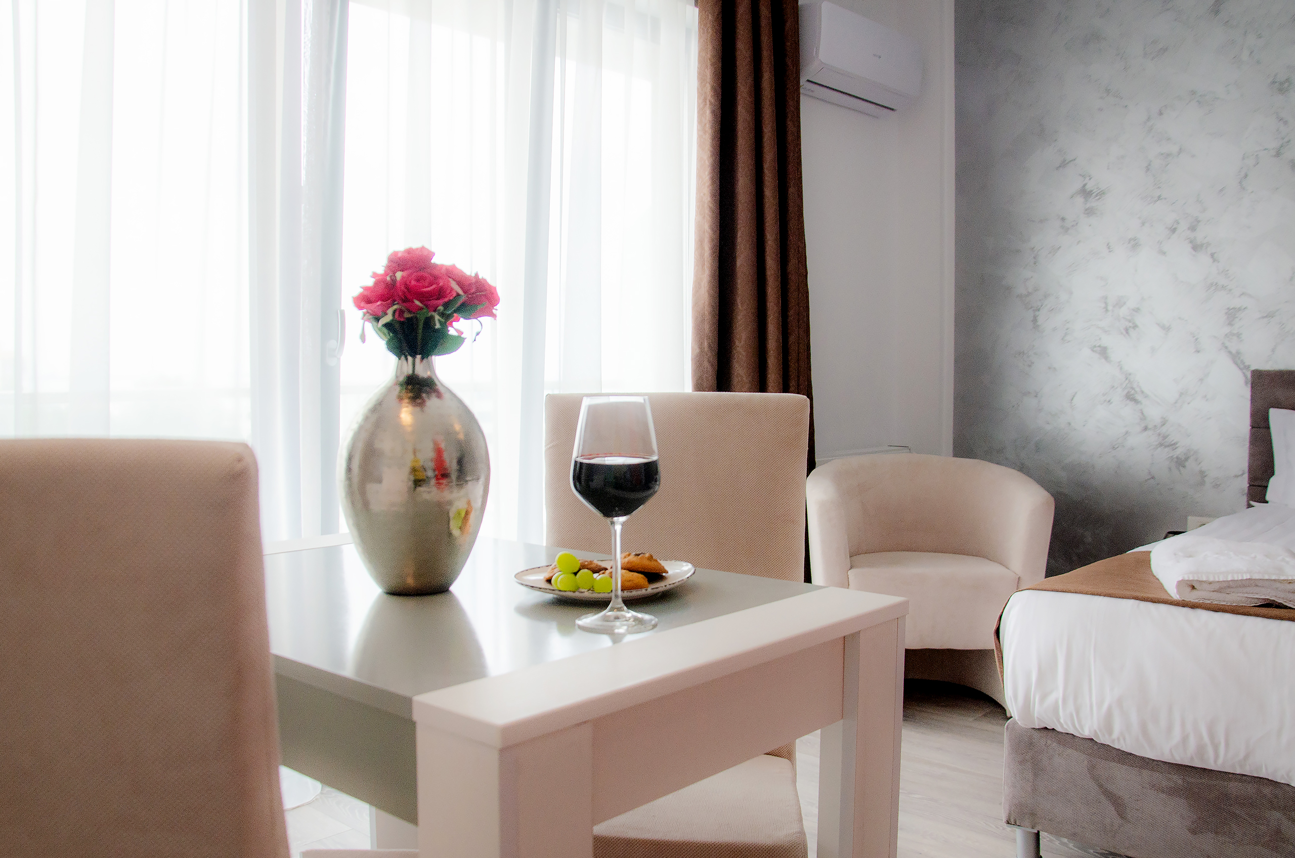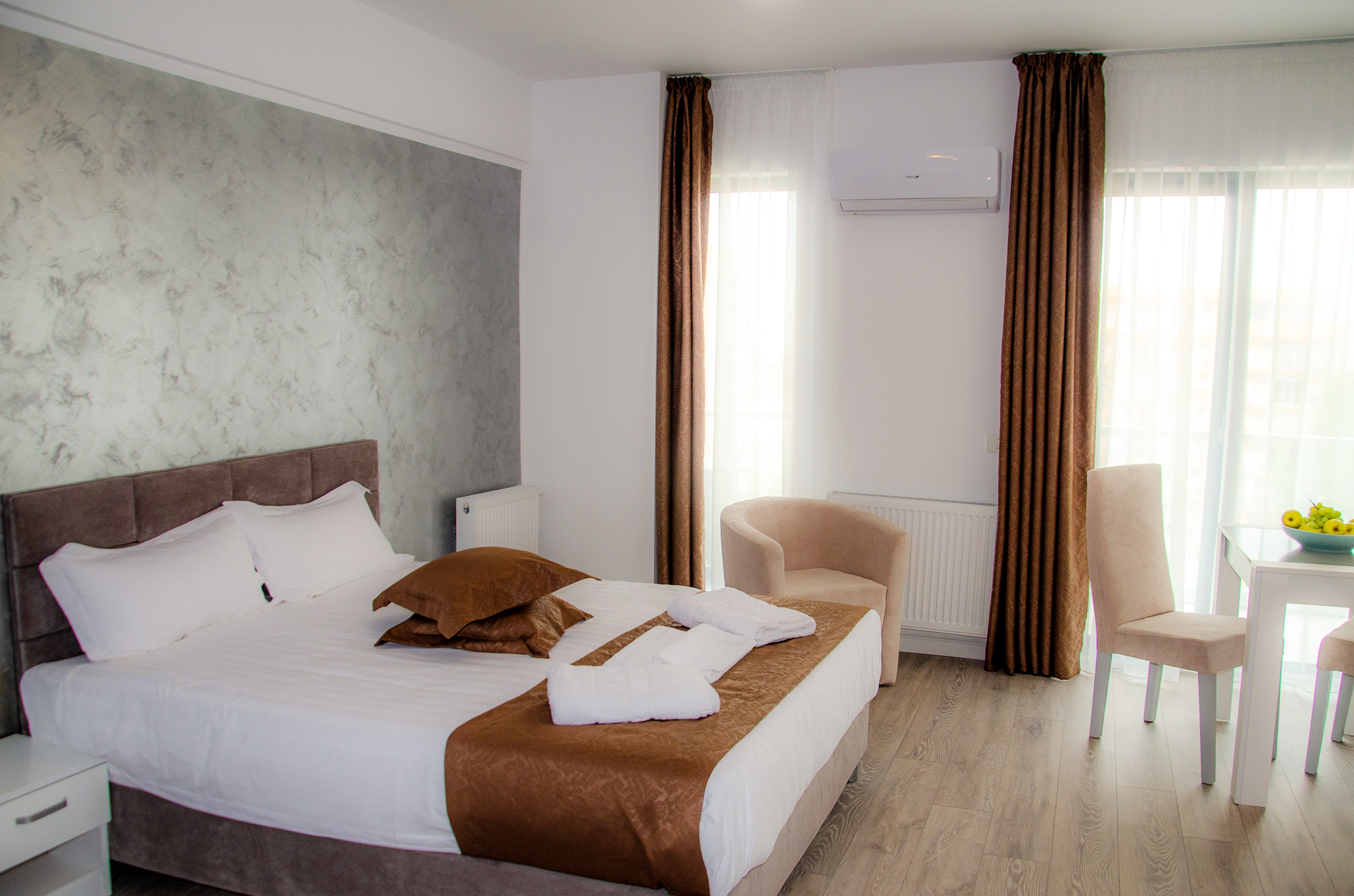 Piscina cu apa incalzita, piscina cu apa sarata, plaja privata cu sezlonguri si umbrele. Receptie 24h. Servicii de housekeeping. Parcare pazita.